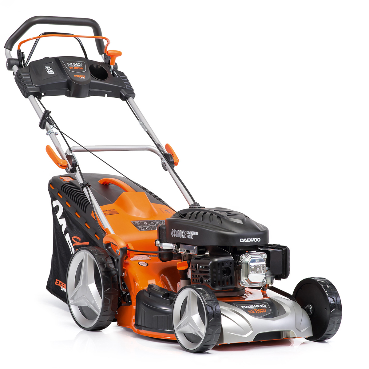 Эргономичная панель управления с удобно расположенными рычагами управления приводом колес и режущей деки. В панель встроены органайзер для мелких предметов и держатель бутылки. Рукоятка имеет мягкую антивибрационную накладку.