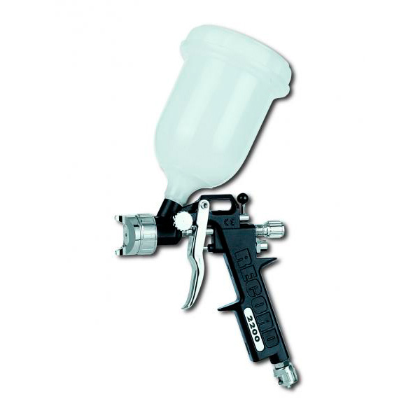Краскопульт GAV RECORD 2200 с диаметром сопла 1,2 мм и верхним бачком объемом 0,6 литров. Корпус из алюминиевого сплава отличается хорошей ударопрочностью. Удобная рукоятка обеспечит комфортную работу. Ширину распыления струи можно регулировать. Есть крючок для подвесного хранения.