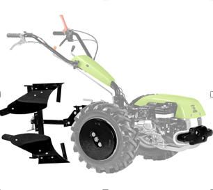 Комплект для вспашки Grillo 952011 представляет из себя два обычных скрепленных плуга. Вспахивание с помощью оборотного плуга уменьшает количество сорняков, делает почву более мягкой и податливой, облегчает дальнейший посев. Качество работы плуга при вспашке достигается за счет переноса верхнего слоя земли вниз. В отличии от обычного плуга оборотный плуг экономит время и горючее за счет ликвидации холостых проходов мотоблока. Угол поворота - 180°. В комплект входит: оборотный плуг, сцепка, грузы на колеса 5.00-12 (20 кг), груз на бампер (11 кг). Для работы с мотоблоком необходимо приобрести проставки 9A3211 и колеса 902512 (5.00-12).