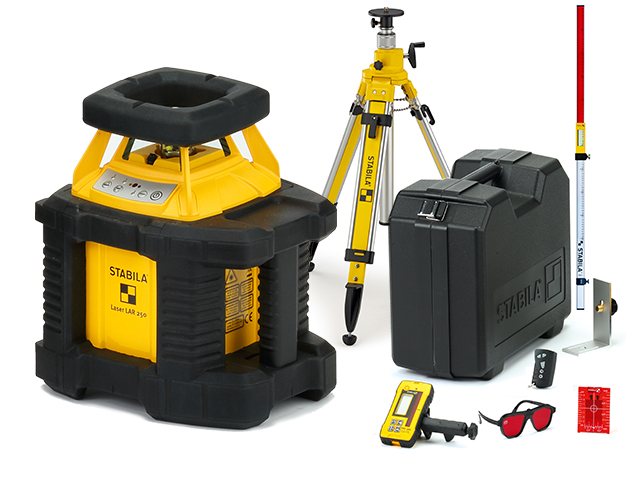 STABILA LAR 250 Complete Set- автоматический ротационный лазерный нивелир с моторным управлением в комплектации с ресивером REC 300 Digital и жестким чехлом. Идеальное решение для горизонтальной и вертикальной разметки для работ на строительной площадке и внутри помещений. Сочетает в себе 8 различных функций: точечная функция и точечная функция 90 град., линейные функции по горизонтали и вертикали, функция отвеса, ротационные функции по горизонтали и вертикали, функция задания наклона по одной оси. Диапазон работ до 350 м. Патентованная защитная система STABILA Protector гарантирует защиту при падении и от ударов корпуса. Совместим с системами управления строительных машин.