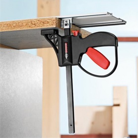 Быстрозажимные струбцины для направляющих шин Bosch FSN KZW - удобная и надежная фиксация направляющей шины на заготовке, для стационарного пиления и фрезерования на направляющей шине.