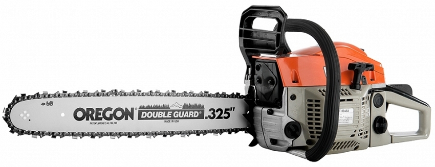 Бензопила Энергомаш ПТ-99458 относится к моделям полупрофессионального класса предназначена для несложных работ по строительству из дерева, заготовки дров, обрезки сучьев и спиливания небольших деревьев. Система автоматической смазки цепи предотвращает перегрев инструмента и снижает нагрузку на двигатель. Кнопка предотвращения непроизвольного запуска защищает от непреднамеренного включения инструмента. Электронное зажигание способствует быстрому запуску и устойчивой работе. Система мгновенного тормоза. Инерционный тормоз обеспечивает безопасность работы, мгновенно останавливая цепь. Стенки цилиндра имеют хромированное покрытие. Антивибрационная система. Пильная шина OREGON обеспечивает эффективность использования и долгую службу. Насос для подкачки топлива. Установленно 2 компрессионных кольца. Имеется защитный щиток. Инструмент и комплектующие поставляются в картонном коробе.