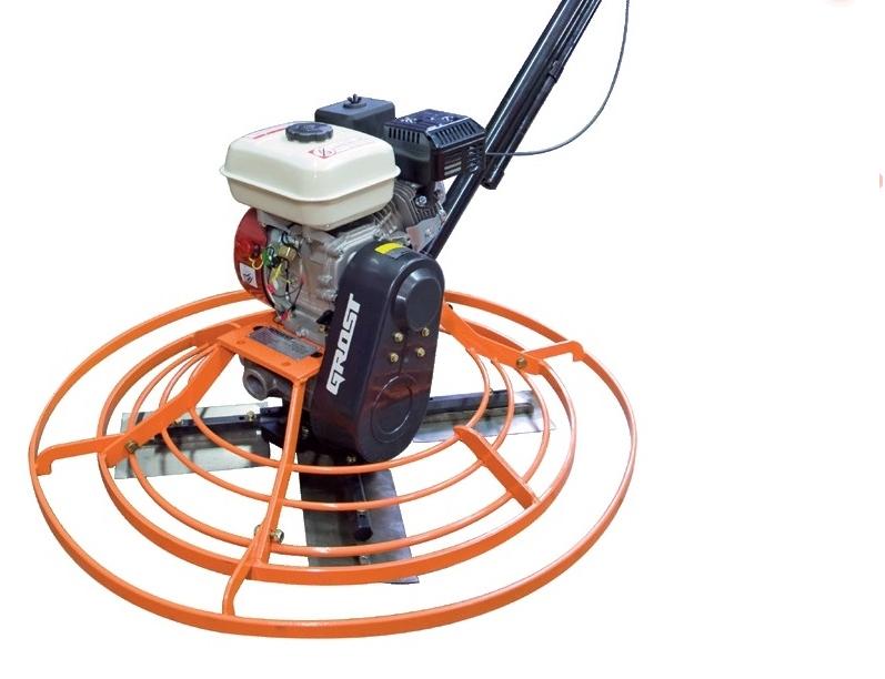 Затирочная машина универсальная GROST ZMU.H оснащается бензиновым приводом Honda GX160, мощностью 5,5 л.с., но привод может быть заменен на электрический. База – одинаковая для всех моделей. Датчик масла позволяет следить за давлением, если давление будет превышено, он автоматически остановит машину и при отсутствии масла не позволит запустить машину. Вращение лопастей прекращается при отпускании оператором ручки. Ручка газа удобно расположена на рукоятке управления.