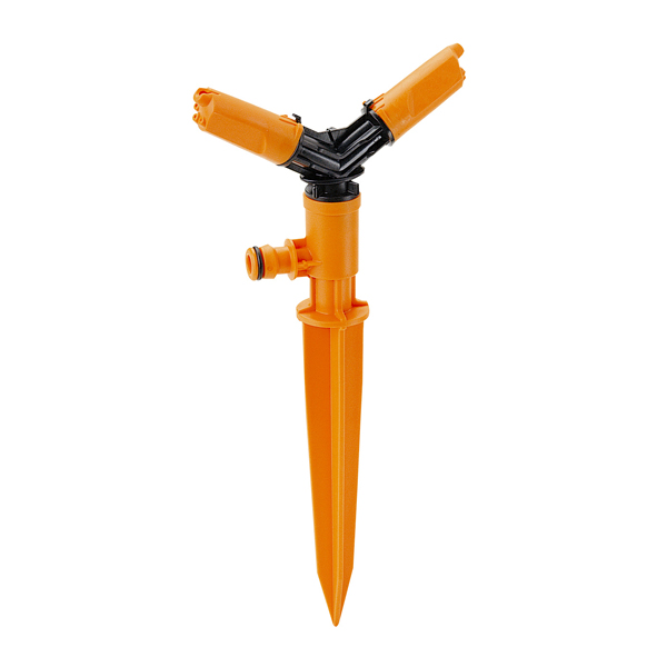 Дождеватель GF 5612 на поворачивающейся ножке служит для орошения средних и больших площадей. Орошает по кругу. Два сопла можно регулировать в зависимости от типа поливаемых растений.