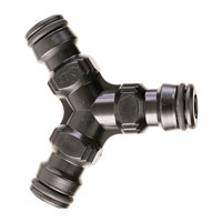 Тройник GF 5451 позволяет подключить 3 поливочных шланга с переходниками, оснащенных автоматическим подключением.