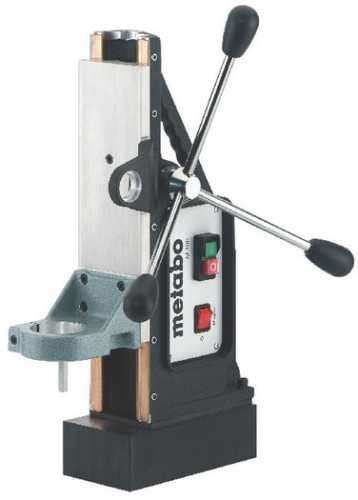 Стойка электромагнитная Metabo M 100 представляет из себя 3-х скоростную дрель, которая предназначена для сверления стали и других твердых материалов в тяжелых условиях, завинчивания больших винтов, таких как рамные фасадные дюбели, а также перемешивания вязких и густых материалов. Стойка предназначена для большего усилия со стороны оператора. Безопасность работы оператора позволяет обеспечить магнитное основание. Дрель оснащена прочным редуктором с жидкой смазкой и предохранительной муфтой. Включить дрель можно только тогда, когда включен магнитный сверлильный штатив. Корпус стойки литой выполнен из алюминия. Дополнительная удлиненная рукоятка позволяет работаь с высоким крутящим моментом. По высоте суппорт регулируется с помощью зубчатой рейки и малой шестерни.