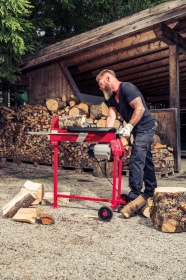 Маленький, компактный и сильный: Этот мобильный горизонтальный дровокол от AL-KO отлично пригоден для колки каминных дров.