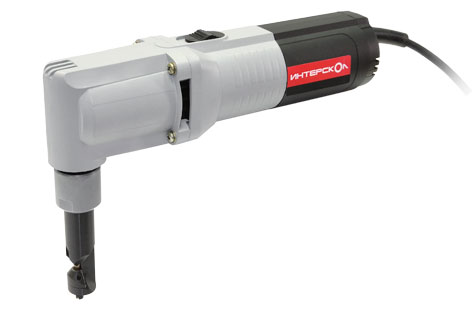 Электрические вырубные ножницы служат для резки металла (лист толщиной 1,2 мм для стали, 2 мм для алюминия), пластмассы, картона (листы до 2,5 мм толщиной) и других материалов. Принцип их работы основан на вырезании за операцию небольшого полукруга, что дает возможность работать с гофрированными и сваренными из нескольких частей листами.