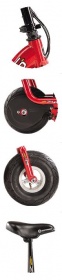 Электросамокат eZip E-4.5 с сиденьем может передвигаться как с помощью мотора, так и с помощью отталкивания, как при управлении обычного самоката. Тихий надежный электромотор включается принципом разгона, то есть для того, чтобы запустить самокат нужно оттолкнуться, привести его в движение, а потом запускается ножным стартером. Передача крутящего момента происходит за счет цепного привода. Двигатель электросамоката работает от свинцово-кислотного заряжаемого аккумулятора напряжением в 12 вольт, спрятанного в корпус, для защиты от брызг и ударов, и который в свою очередь можно быстро заменить, если старый пришел в негодность. Максимальную скорость, которую может развить данное транспортное средство, составляет 19 км/ч. Скорость регулируется поворотной ручкой акселератора, расположенного на руле. eZip E-4.5 стоит на двух надувных колесах, переднее из них имеет размер 10 дюймов, а заднее, которое еще и ведущеее, размер 8 дюймов. Задний тормоз с ручкой на руле позволит резко затормозить в случае непредвиденной ситуации. Ширина платформы для ног (ширина деки) 19 см, длина деки 48 см, что не дает ноге соскользнуть. Общая длина самоката 105 см. Руль имеет фиксированную высоту, от деки 78 см, от земли 96 см и ширина 45 см, оснащен мягкими резиновыми грипсами. Подходит как подросткам в возрасте от 10 лет и ростом от 120 до 170 см, так и взрослым. Сиденье можно снять для экономии места при хранении и для транспортировки, или просто при езде стоя. Нескладной руль фиксируется хомутом. Для передвижения на дальние дистанции можно установить мягкое седло и подседельный штырь, которое не позволит устать во время движения.