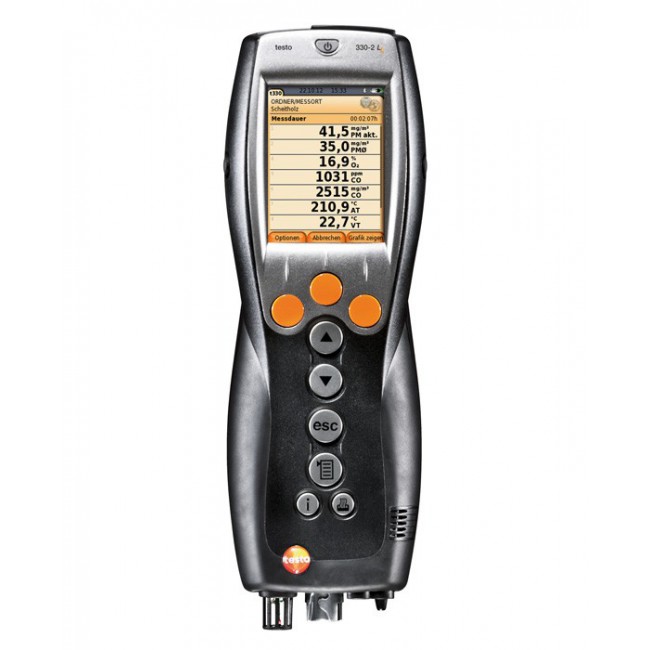 Газоанализатор Testo 330-2 LL c цветным дисплеем для системы отопления проводит качественное и количественное измерение содержания газов и загрязняющих веществ в атмосфере или в исследуемой смеси различных газов. В прибор включена функция выбор топлива, что ускоряет работу зонда. Сравнительный анализ полученных проб и имеющихся в памяти данных, проводимый мультигазоанализатором, дает возможность точно установить все компоненты отобранного образца. В состав прибора входит конденсатоуловитель, который позволяет контролировать уровень конденсата или остаточный ресурс электрохимических сенсоров. Встроенный пневмометрический газоотборник позволяет осуществлять как мгновенные измерения, так и продолжительный контроль концентрации токсичных газов. Для газоанализатор testo 330-2LL доступно мобильное приложение TestoDroid (бесплатное, англоязычное). Данная модель применяется для определения концентрации СО в воздухе, поскольку позволяет проводить высокоэффективные измерения до уровня 30 000 ппм.