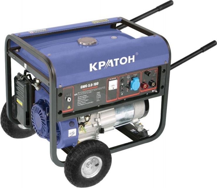 Бензиновая сварочная электростанция КРАТОН GWG-5,0-180 предназначена для использования в качестве резервного (временного) источника электропитания в случаях, когда постоянное электроснабжение временно отсутствует. Электрозапуск и ручной пусковой механизм обеспечивают гарантированный запуск двигателя при низкой температуре окружающей среды или разряженном аккумуляторе. Используя данную модель при сварке на постоянном токе, можно производить сварку конструкций из высокоуглеродистых, легированных сталей с минимальным короблением, а также изделий из чугуна. Автомат остановки двигателя при снижении уровня масла позволяет предотвратить выход из строя двигателя при снижении масла в картере двигателя до недопустимого уровня. Удобные рукоятки служат для удобного перемещения по рабочему месту. Автоматический регулятор напряжения позволяет генерировать электрическую энергию со стабильными параметрами. Уникальная конструкция низкотонного двигателя глушителя значительно снижает шум от выхлопных газов двигателя при их выходе в атмосферу без снижения его мощности. Транспортировочные колеса предназначены для быстрой и безопасной транспортировки пушки.