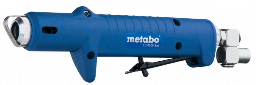 Ножницы по металлу Metabo KS 6000 Set используются для пиления под различными углами различных болванок из цветного металла, а также деревянных или пластмассовых заготовок. Применяются для резки стекловолокна, алюминия и листового металла. Для точной установки глубины реза применяется защитная регулируемая скоба. Для нешумной и чистой работы используется звукоизолированный отвод воздуха назад. За счет поворотному шарниру впуска воздуха обеспечивается оптимальная подвижность. Корпус выполнен из пластмассы, поэтому конструкция довольно легкая, теплоизолирующая, с низким уровнем вибрации. Замена пильного полотна происходит за счет блокировки шпинделя и не требуется демонтировать подвижный защитный кожух. Защищены от случайного включения за счет предохранительного рычага.