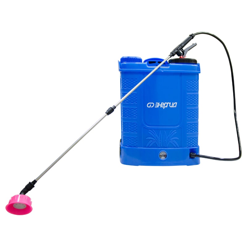 Опрыскиватель аккумуляторный ранцевый ЭНЕРГИЯ ZX-12E-06 обеспечен аккумуляторной батареей, которая обеспечивает энергией насос опрыскивателя в течение 6 часов. Съемный фильтр, установленный в большой заливной горловине, защищает опрыскиватель от засорения. В корпус опрыскивателя встроен вольтметр, который позволяет постоянно отслеживать уровень заряда аккумулятора. Интенсивность распыления можно регулировать при помощи регулятора.