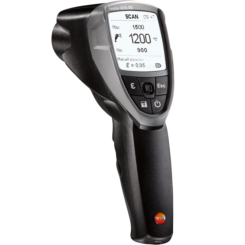 Инфракрасный пирометр Testo 835-T2 предназначен для измерения температур до 1500 °C с высочайшем уровнем точности даже на значительном расстоянии благодаря увеличенному диапазону - например, в процессе мониторинга температуры продукции на производстве.. Основное применение в промышленности, торговле, климат в зданиях, сооружение климатических установок, профессиональные услуги отопление/сантехника, эксплуатация объекта отопление/вентиляция, проектирование коммунальных систем. Подсветка дисплея. Иконки меню для интуитивного управления.