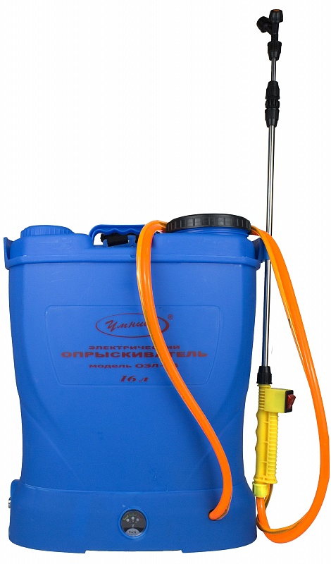 Опрыскиватель аккумуляторный Умница ОЭЛ-16 – идеальное средство для проведения профессиональных работ по химической защите растений от вредителей и болезней, борьбы с сорняками и распыления удобрений на дальних расстояниях и в труднодоступных местах. Оптимальная вместимость бака 15 литров позволяет сэкономить значительное время на его перезаправку, встроенный электронасос сводит все ручные работы к минимуму. Компактный регулятор давления, установленный на опрыскивателе ОЭЛ-16 , позволяет производить работу как с высоким давлением 5,5 бар, так с низким для распыления гербицидов. Наличие аккумулятора позволяет опрыскивателю непрерывно работать несколько часов в автономном режиме и многократно ускорить процесс выполняемой работы.Опрыскиватели имеют телескопическую удочку из нержавеющей стали, которая может регулироваться по длине от 50 см до 85 см.