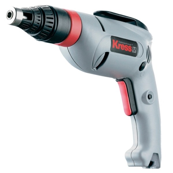 Шуруповерт для сухих материалов KRESS 505 TBS используется при отделке интерьера для работы с гипсокартоном, ДВП и другими материалами. Оснащается двигателем мощностью 500Вт, обороты холостого хода регулируются до 4650 об/мин, максимальная глубина вкручивания в древесину — 5мм. Реверсивная функция позволяет менять направление вращения биты. Инструмент оснащается съемным ограничителем глубины с шаговым регулированием. Такое приспособление особенно удобно при серийном завинчивании. Наличие в конструкции предохранительной муфты обеспечивает автоматическое отключение шуруповерта при достижении установленной глубины завинчивания.